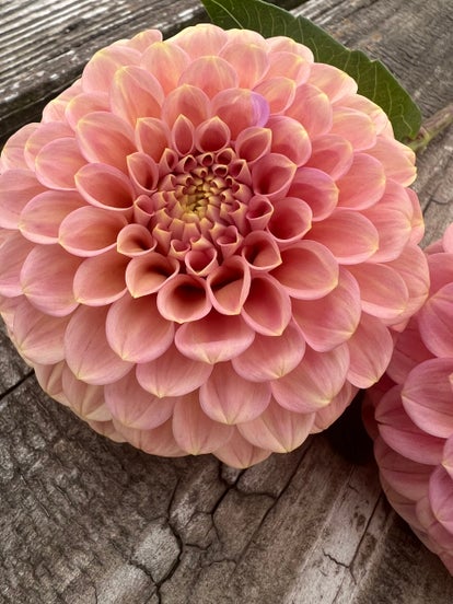 Formal decorative type dahlia with soft pink to peach colored three-inch blooms, with a dusty rose or mauve hue. Truly stunning. Fits in almost any color palette.