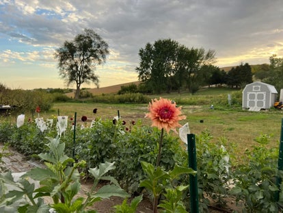 This cafe au lait dahlia can vary in color, from blush or cream to lavender or pink. As a dinner plate dahlia, it is large and absolutely stunning.