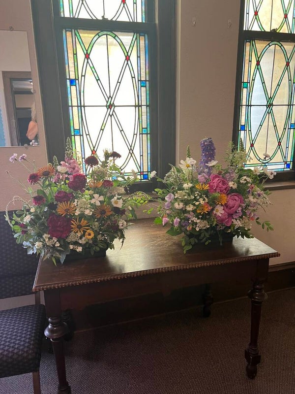 The best of what's harvested fresh from the garden arranged tastefully in an extra large vase. Flower selection varies depending on availability. Flowers pictured were purchased for special occasion events, including a new business grand opening, celebration of life memorial service and bridal shower flowers. Custom arrangements also available, please ask.